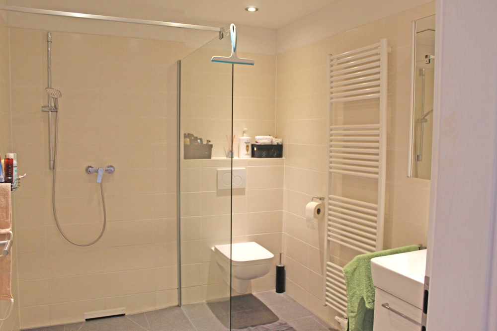 -Bad mit bodengleicher Dusche und Handtuchheizkörper