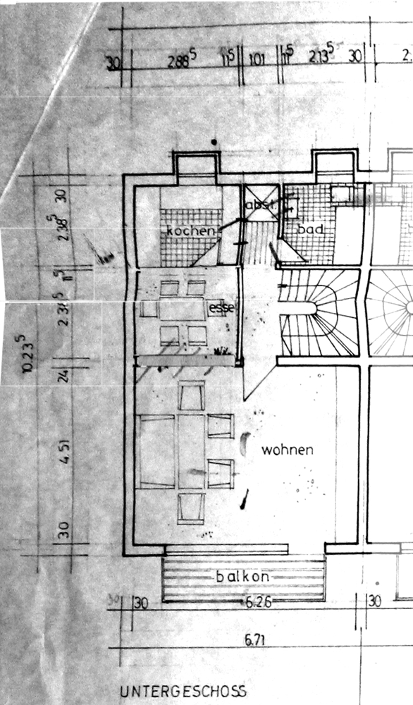 Noch eine Etage tiefer befindet sich der Keller. Dieser wurde als Teilunterkellerung ausgeführt und besteht aus einem großen Raum mit Tageslichtfenstern und einem Ausgang auf die Terrasse. Eine vom Raum abgetrennte Nische beherbergt die Gaszentralheizung, ein Brennwertgerät von Buderus aus dem Jahre 2003.
