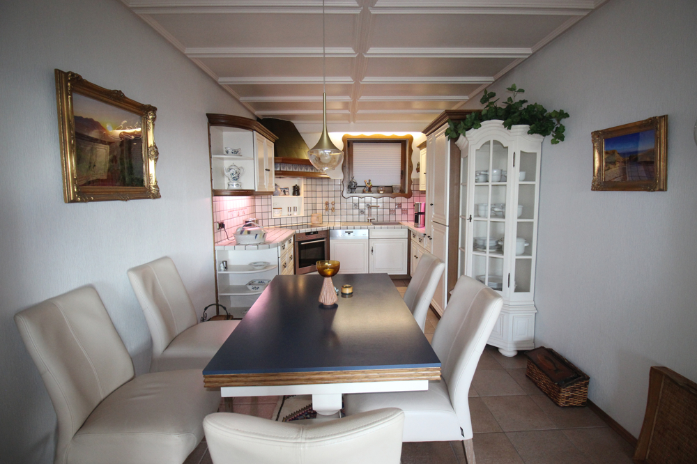 Fliesenbodenbelag durchgehend in offen gestalteter Wohn- / Essküche.