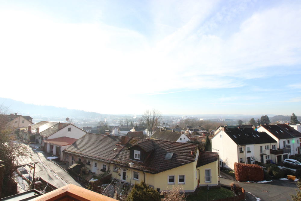 Von diesem Reihenhaus aus hat man einen herrlichen Ausblick über die Dächer der ca. 27.000 Einwohner zählenden Kreisstadt Kulmbach und das Tal des weißen Mains.