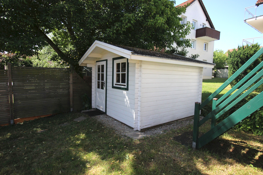 Im Garten steht außerdem eine Gartenhütte für Gartengeräte oder Gartenmöbel zur Verfügung.