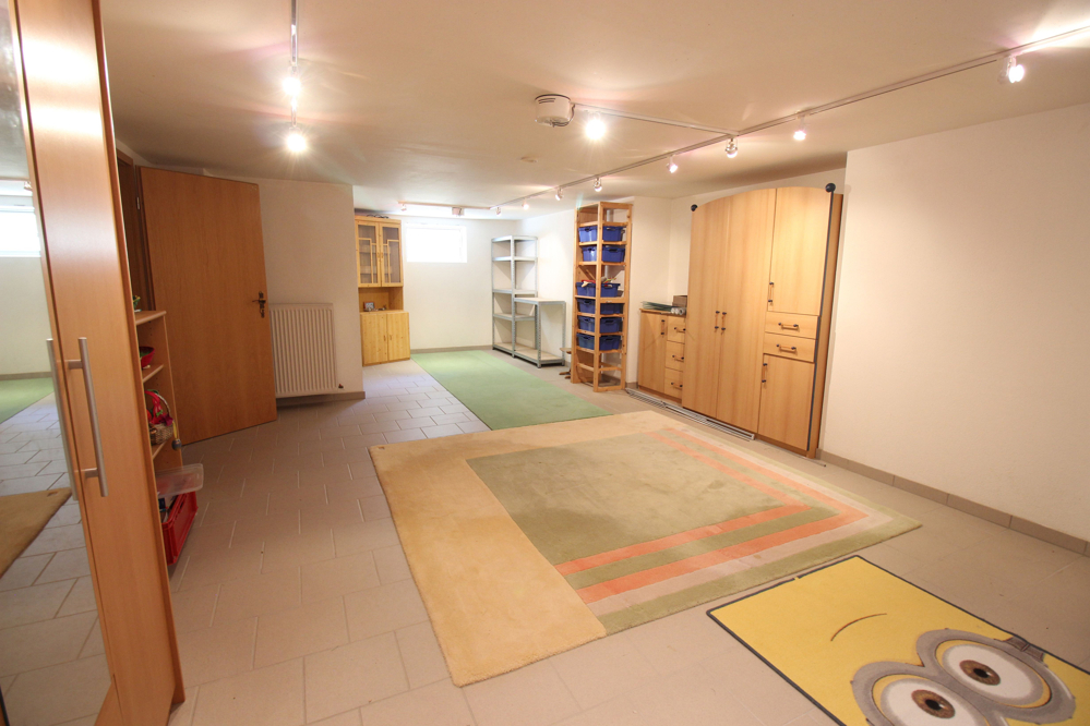 Ebenfalls nutzbar und als Keller schon fast zu schade sind die Räume im Untergeschoss. Natürlich finden hier Heizung, Öltanks und Waschmaschine ihren Platz. Ein Lagerkeller sowie ein großer Raum, gleich dem Wohn- Esszimmer im EG, sind ordentlich gefliest und stehen für Ihre Ideen zur Verfügung.