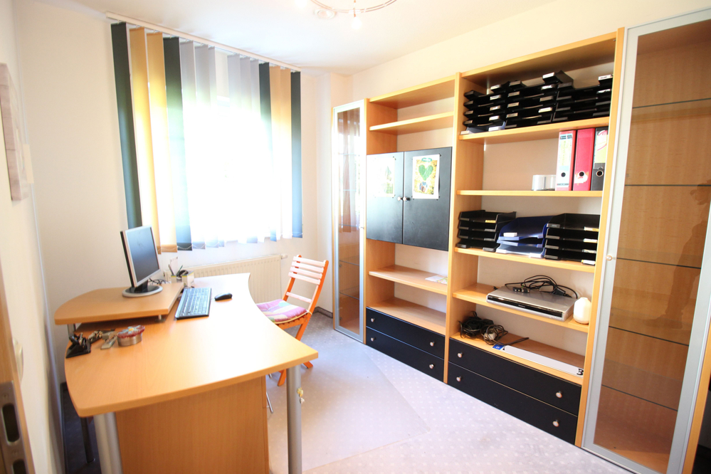 Im Erdgeschoss befindet sich neben der großzügigen Diele, von der man in alle Räume treten kann, ein Büro, ein Abstellraum, ein Gäste WC und die Küche. Das Herzstück auf dieser Etage ist aber das riesige Woh- / Esszimmer. Vier Fenster und eine doppelte Terrassentür bieten Blick in den geschmackvoll angelegten Garten und die Terrasse. Letztere wird von der Bepflanzung im Garten vor den meisten Blicken geschützt und ist zumindest im Sommer eine herrliche Wohnraumerweiterung.