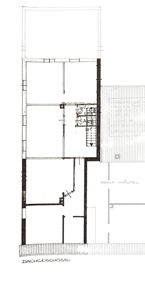 Anfang der 1960er Jahre wurde aus einer ursprünglichen Dachterrasse, je ein weiteres Zimmer für die beiden Wohnungen. Auch wurde das ursprüngliche große Haus in zwei Doppelhaushälften aufgeteilt. Eine davon wird hier zu Kauf angeboten.